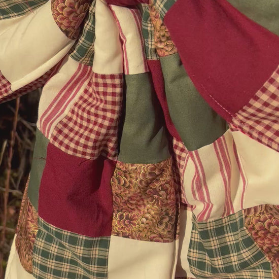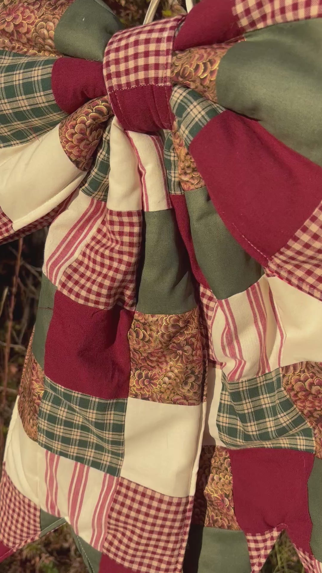 handcrafted reworked quilt bow —each bow carries fragments of a story — quilts that once warmed homes, now reimagined into lasting keepsakes, a true one-of-a-kind creation. This is functional art for your home!